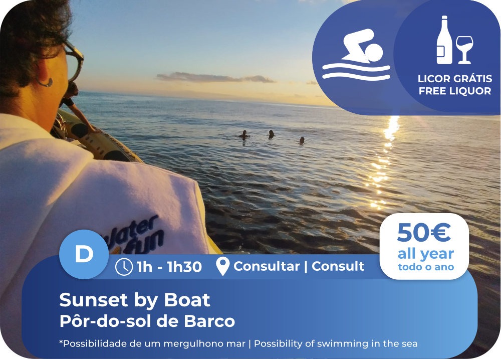 Aproveite o fim de tarde para um magnifico passeio de barco, com boa disposição abordo. Este passeio é precisamente para o casal apaixonado, para o amante da natureza, para todas as idades.